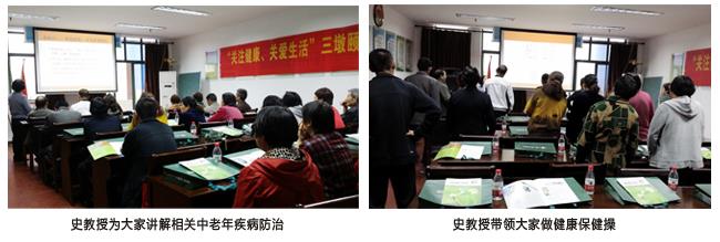 此次講座由享受國務院特殊津貼的史杏英教授主講,深入淺出地為中老年朋友們講解了有關高血壓、高血糖、高血脂及心腦血管方面疾病的常見癥狀、并發(fā)癥和預防,以及對即將到來的夏季如何調整高血壓服藥劑量、注意事項、養(yǎng)生保健等健康知識做了詳盡的介紹,引導中老年朋友們增強疾病預防意識,養(yǎng)成良好的生活習慣,建立健康的生活方式。講座結束,史教授還帶領現場中老年朋友們做了健康保健操,讓每一位中老年朋友體會到了健康在于運動的樂趣。